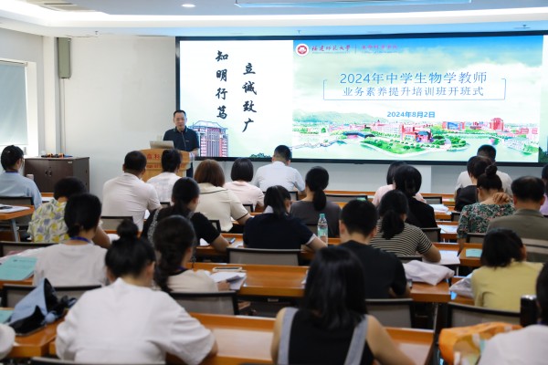 8月2日,由生命科学学院主办的2024年中学生物学教师业务素养提升培训班在乐鱼(中国)旗山校区举行。本次培训为期6天,来自省内外80名中学生物学教师参加。生命科学学院党委书记张兆文、副书记李明杰,院务委员苏经迁,生物科学系主任俞如旺,生物科学专业负责人胡雪峰等多位教师代表出席开班式。