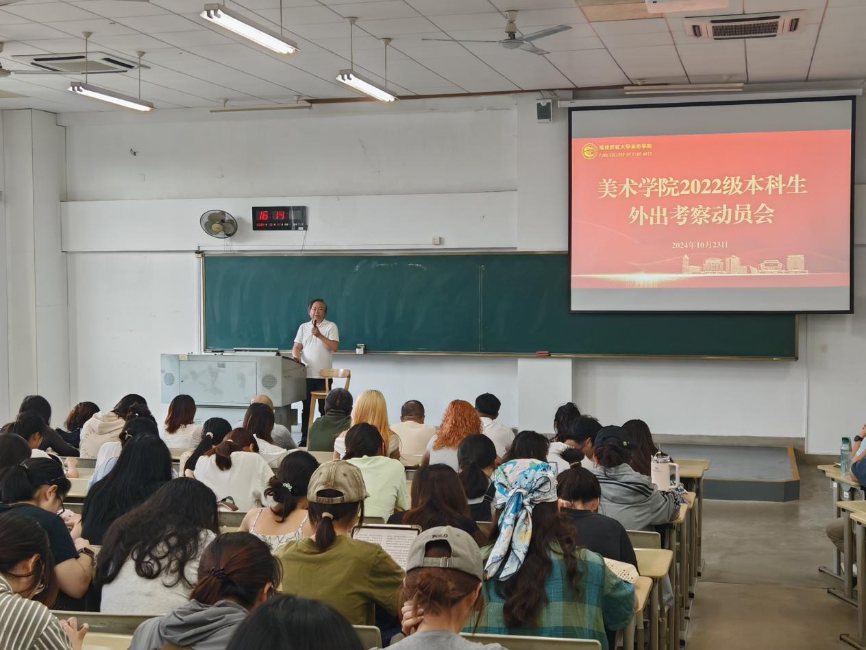 1023日下午,美术学院举行2022级本科生外出考察动员会,院长罗礼平、党委副书记黄智锋、副院长王英暎、师生代表240余人参加动员会。