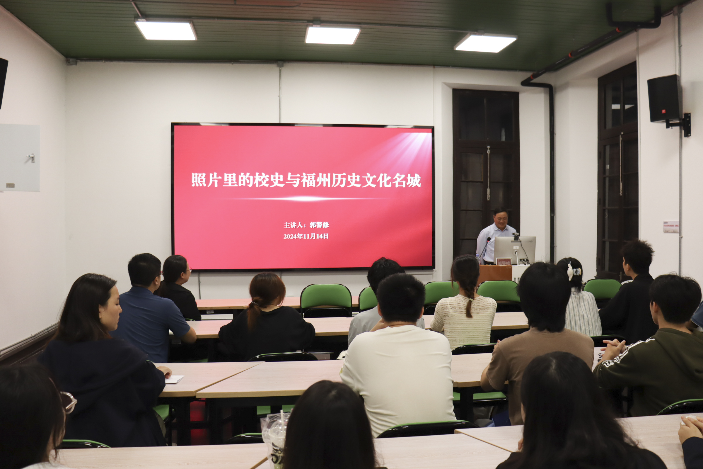 近日,教师教育学院特邀校关工委副主任兼秘书长郭警修,为学院小青椒校史宣讲团成员开展题为“照片里的校史与福州历史文化名城”的校史校情教育。郭警修以生动的语言,讲述了一张张老照片背后的故事,并将校史与福州的城市发展联系在一起,介绍了福州的历史沿革、文化特色以及乐鱼(中国)在福州的独特地位和作用。此外,郭警修还向学生赠送记录百年师大珍贵影像的书籍《印象师大》。(教师教育学院)