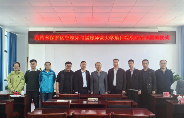 11月22日,地理科学学院与黄楮林国家级自然保护区管理处在闽清举办战略合作框架协议签约仪式。福建雄江黄楮林国家级自然保护区党工委书记、管理处主任徐友镔,保护区领导班子成员、科室负责同志,地理科学学院院长吴福忠以及教师代表出席签约仪式,吴福忠、徐友镔分别代表双方签约。