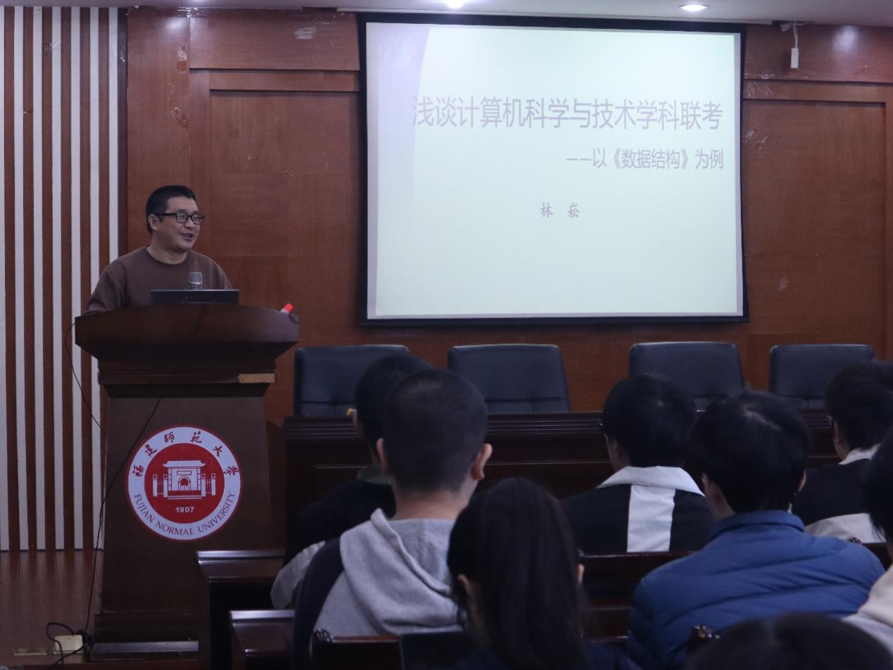 1126日,计算机与网络空间安全学院在学院大楼会议室召开2025年考研计算机科学与技术学科联考专业课备考指导会。学院院务委员、工会主席、计算机科学与技术学位点负责人林崧教授受邀为2021级考研学生作专题讲座,活动由院团委书记赖敏主持。