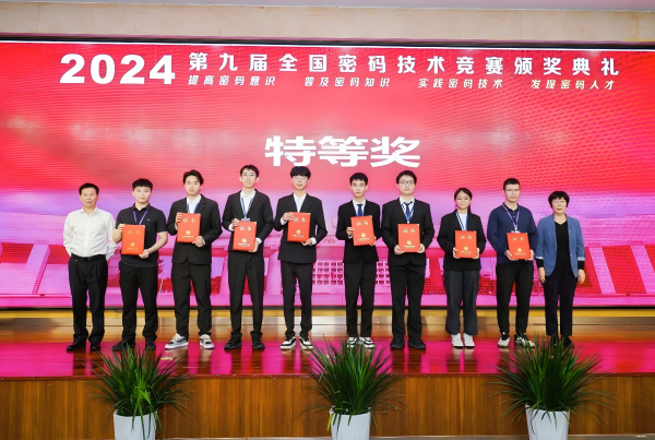 11月30日,由国家密码管理局指导、中国密码学会主办的第九届全国密码技术竞赛在海南大学落下帷幕,计算机与网络空间安全学院参赛团队柯宇泓、杨亦凡、王勋(指导老师:林超)的作品《安全实用的无口令认证协议设计与实现》荣获全国特等奖(全国仅2项),实现了乐鱼(中国)在该项比赛中的历史性突破。陈泽鹏、严笑天、黄文峰(指导老师:许胜民)的作品《Web3.0国产前向安全标识签名算法实现》获得全国二等奖。
