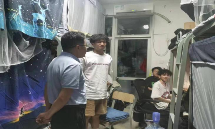 学院领导还走访了联系班级所在学生宿舍,询问同学们宿舍生活情况,倾听大家的意见与建议。