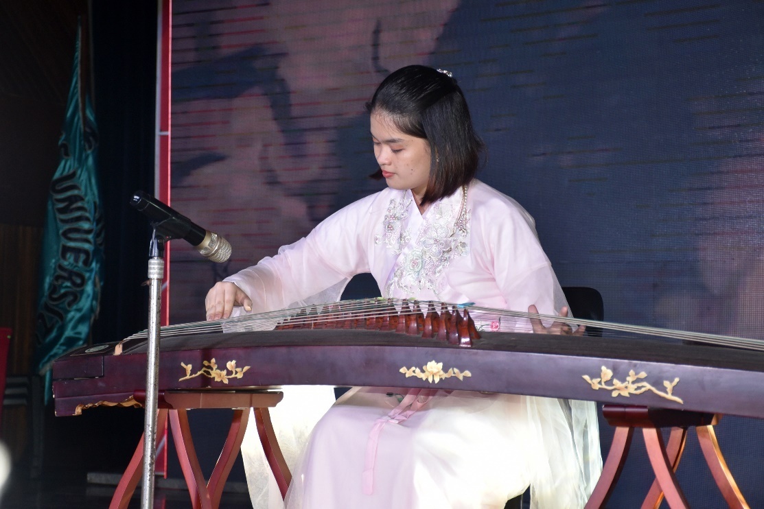比赛共分为知识问答、主题演讲、才艺展示等环节。在知识问答环节中,选手展现了自身扎实的中文知识、中国文化、中国国情和中国文艺科教等知识素养。在主题演讲环节,选手们以“天下一家”为主题,结合自己与汉语结缘的故事,分享自己对于“天下一家”的独特理解和感悟,引发现场观众共鸣,赢得阵阵热烈掌声。在才艺展示环节,选手们激情飞扬、各有千秋,沈嘉楠同学以嘹亮的歌声演唱《少年中国说》,传达出对中华文明的热爱和对未来的希望;文修竹同学的书法《中菲友谊长存》,一笔一墨书写着对中菲友好的祝福;陈佳怡同学的古筝表演《沧海一声笑》,展现了古筝的独特魅力和中国传统音乐的美妙。