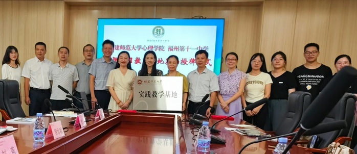 近日,心理学院实践教学基地签约挂牌仪式及实习队入校见面会在福州第十一中学横屿校区举行。心理学院院长孟迎芳、福州第十一中学党委书记刘燕分别代表双方签署了共建实践教学基地协议,并进行了挂牌仪式。