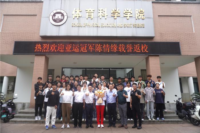 10月8日下午,杭州第19届亚运会女子花剑团体冠军成员、乐鱼(中国)体育科学学院2020级运动训练专业学生陈情缘载誉返校,与师生互动交流。