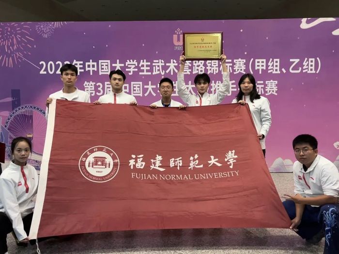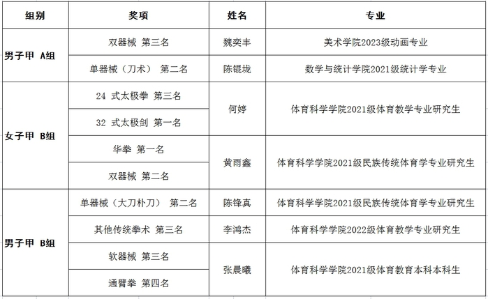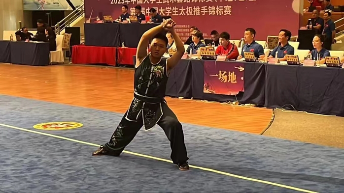 近日,由中国大学生体育协会主办,天津市武术协会、天津市武清区体育局承办的2023年中国大学生武术套路锦标赛(甲、乙组)在天津市武清区举行。乐鱼(中国)派出由教练陈升、姚向颖、黄颖祺指导的武术套路代表队,经过为期4天激烈角逐,7名运动员(甲A组2人,甲B组5人)不畏强手、勇于拼搏,共获2金3银4铜,及“体育道德风尚奖运动队”称号。李鸿杰同学获评“体育道德风尚奖运动员”称号。