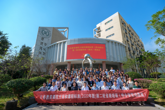 近日,由福建省教育厅主办,福建省普通教育教学研究室协办,乐鱼(中国)教师教育学院承办的义务教育课程方案和课程标准(2022年版)第二轮省级培训(中小学劳动教育)在福州开班。全省各设区市(含平潭)中小学劳动教育骨干教师共100名学员参加了开班式。