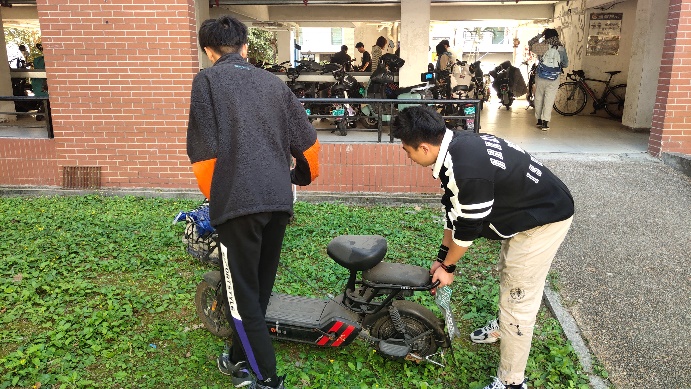 学院组织学生党员、学生干部开展校园电动车专项治理志愿服务,对长期停放在宿舍楼架空层及其周边的无主电动自行车、违规电动车进行清理和公示。