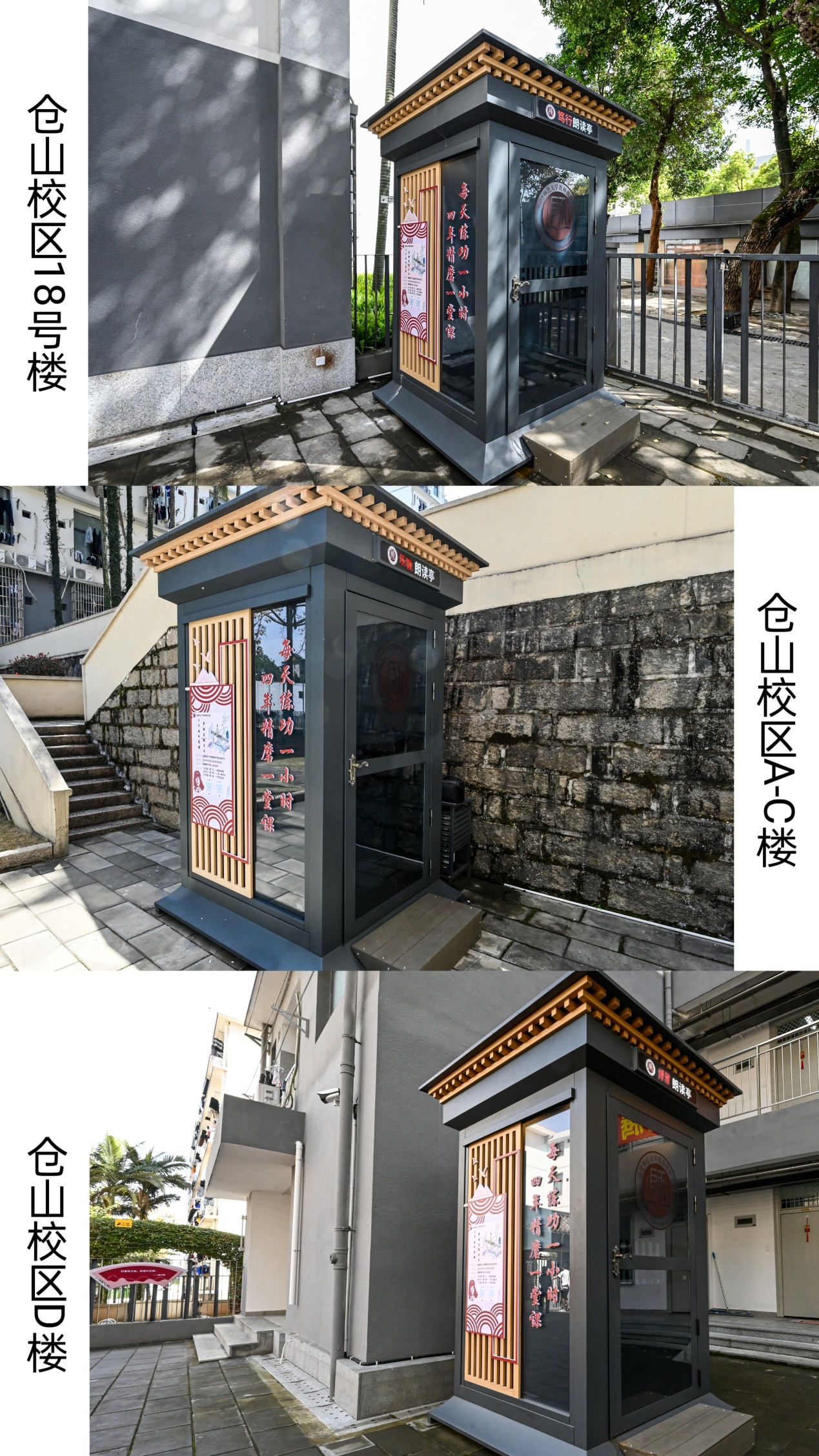 近日,教师教育学院在仓山校区18号楼、A-C楼、D楼正式投入使用三座朗读亭。