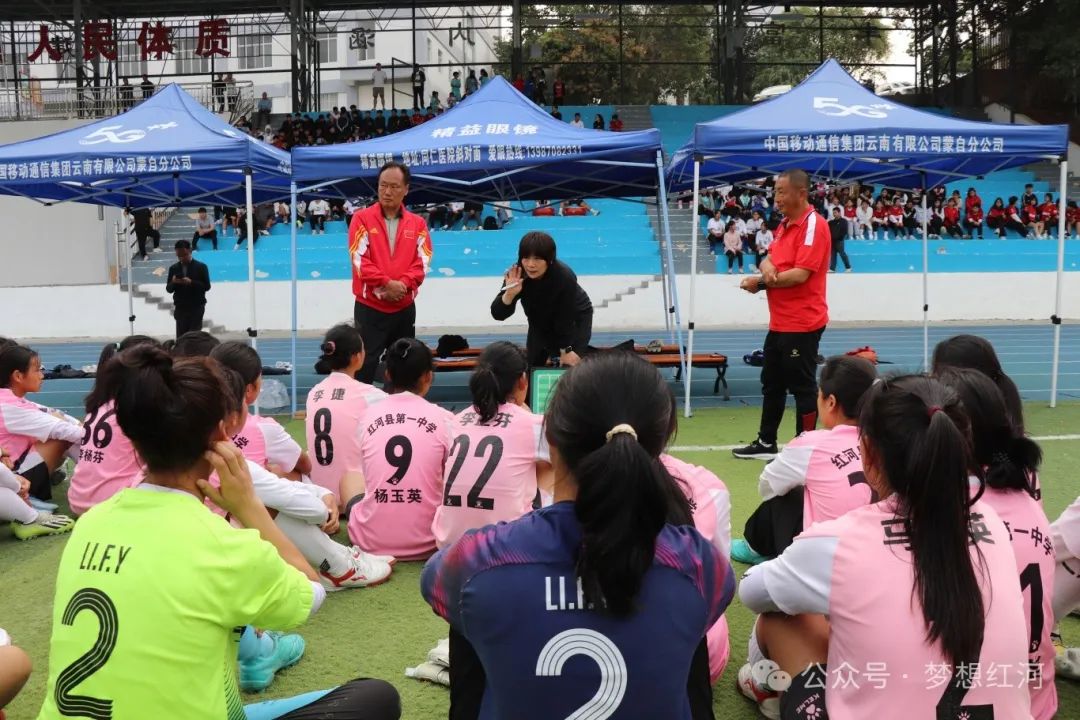 考察团一行先后到红河县全民健身中心、红河县第一中学等地,通过听取汇报、实地考察、座谈交流等方式,深入了解红河县校园足球发展工作情况。期间,水庆霞教练、乐鱼(中国)足球教练代表团为红河县青少年足球发展中心揭牌。在红河县女子足球队与云南大学、开运市少体校的两场足球友谊赛中,水庆霞与选手互动并现场指导比赛。