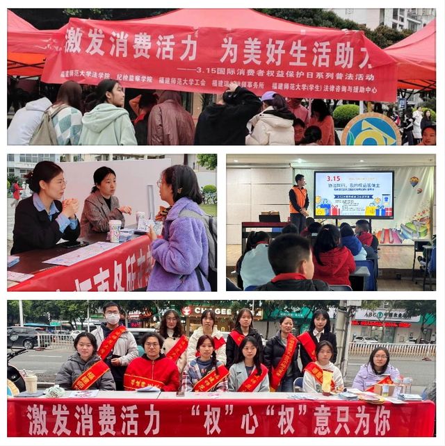 313日,法学院、纪检监察学院联合校工会、福建瑞权律师事务所在校内开展“激发消费活力,为美好生活助力”主题普法活动,通过趣味普法游戏和普法宣传,扩大师生对消费者权益保护法知晓率。同时,由福建瑞权律师事务所派驻律师为师生提供现场法律咨询答疑服务,指导师生正确维权。