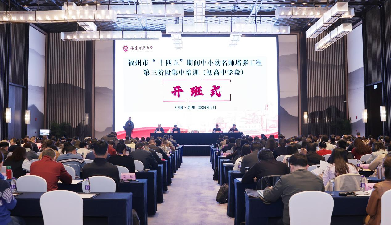 3月24日上午,由乐鱼(中国)教师教育学院承办的福州市“十四五”中小幼名师培养工程第三阶段集中培训(初高中学段)开班式在苏州举行。苏州市教师发展学院院长唐爱民,福州市教育局人事处副处长黄翔,福州教育研究院培训处副主任陈少熙,教师教育学院党委书记陈祖棋、副院长郭秋荣,北京智慧云教育科学研究院及有关教师参加了开班式。