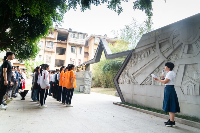 附中校领导、校友会教师代表、教师党支部党员代表、高中部团员代表、初中部少先队员代表,在英雄墙前举行“祭奠英烈校友”仪式,讲述校友故事,学生代表献花,党员教师重温入党誓词。