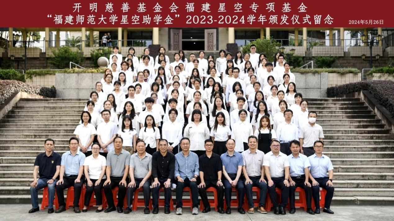 近日,开明慈善基金会福建星空专项基金2023-2024学年“LEYU.COM星空助学金”颁发仪式在仓山校区科学会堂举行。全国政协社会和法制委员会原副主任、福建社会科学院原院长、乐鱼(中国)文艺批评研究中心首席专家张帆教授,“LEYU.COM星空助学金”项目捐资方——开明慈善基金会第四届理事会副理事长、福建民进经济界联谊会会长、福建新思路集团有限公司董事长王东平,副校长郑家建、相关职能部门负责人、文学院党政领导班子,全体受助学生、师生代表参加了仪式。