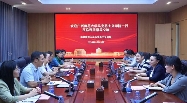 近日,广西师范大学马克思主义学院党委书记罗富元一行莅临乐鱼(中国)马克思主义学院调研交流。马克思主义学院院长傅慧芳教授以及相关科室负责人参加了调研座谈会。